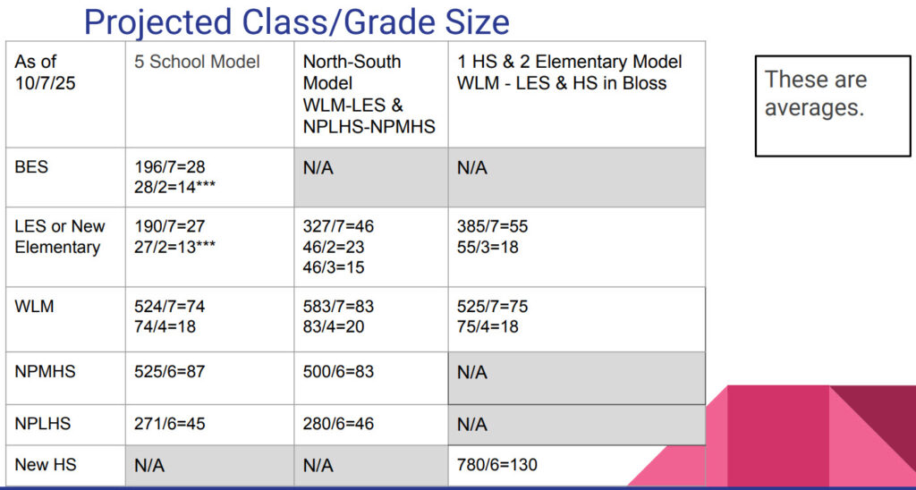 - Would allow for similar sized classes (Student/Teacher Ratios) across the district. BES and LES currently overstaff due to too few students for each teacher. WLM is at the appropriate ratio.