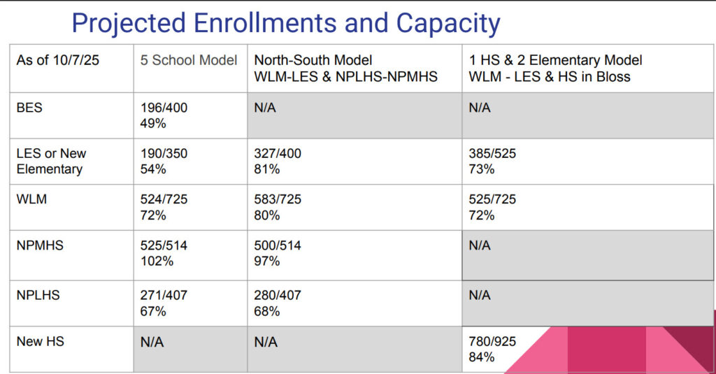 11/4/2025 – As expected, the School Board raised the idea of an Option 3/Alternate – now becoming Option 4 – Close LES and merge into BES. This is an interesting option as it can be done in a few different ways. BES could be fully used with only the priority items being addressed rather than a full new facility. The “old” portion of BES could be torn down and rebuilt at a lower cost to Option 3. They could also lay the plan for a future fully consolidated Elementary school at the same site. They get all of the savings with minimal effort if they so desire. While I’m not for Option 3 or 4, option 4 would be the obvious choice if it is on the table without a consolidated Highschool.