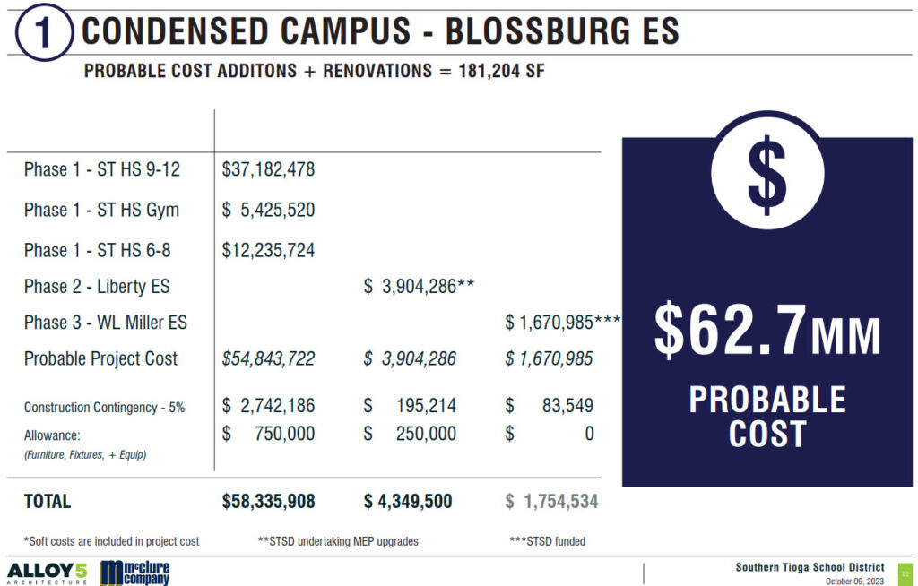 10/14/2025 – While reviewing all information that has been presented over the last 20 or so years, it is my belief that the school district needs to consolidate the high schools into one location while providing viable Elementary schools at the Mansfield and Liberty locations. This belief has also been echoed by multiple previous school boards, only to be swept aside the following year after a decision has been made because new members have been elected with the express purpose to maintain status quo or to eliminate Blossburg schools. It’s the only option on the table that truly reduces the operational and administrative costs for the long haul and is the biggest lever the school district can pull.
