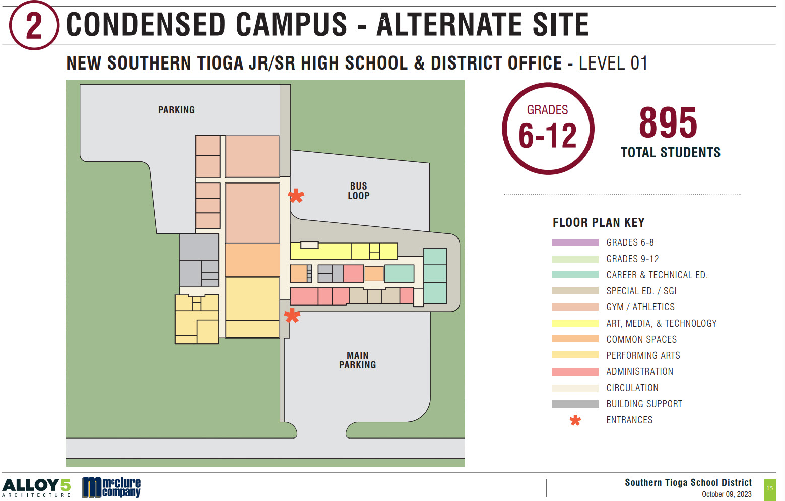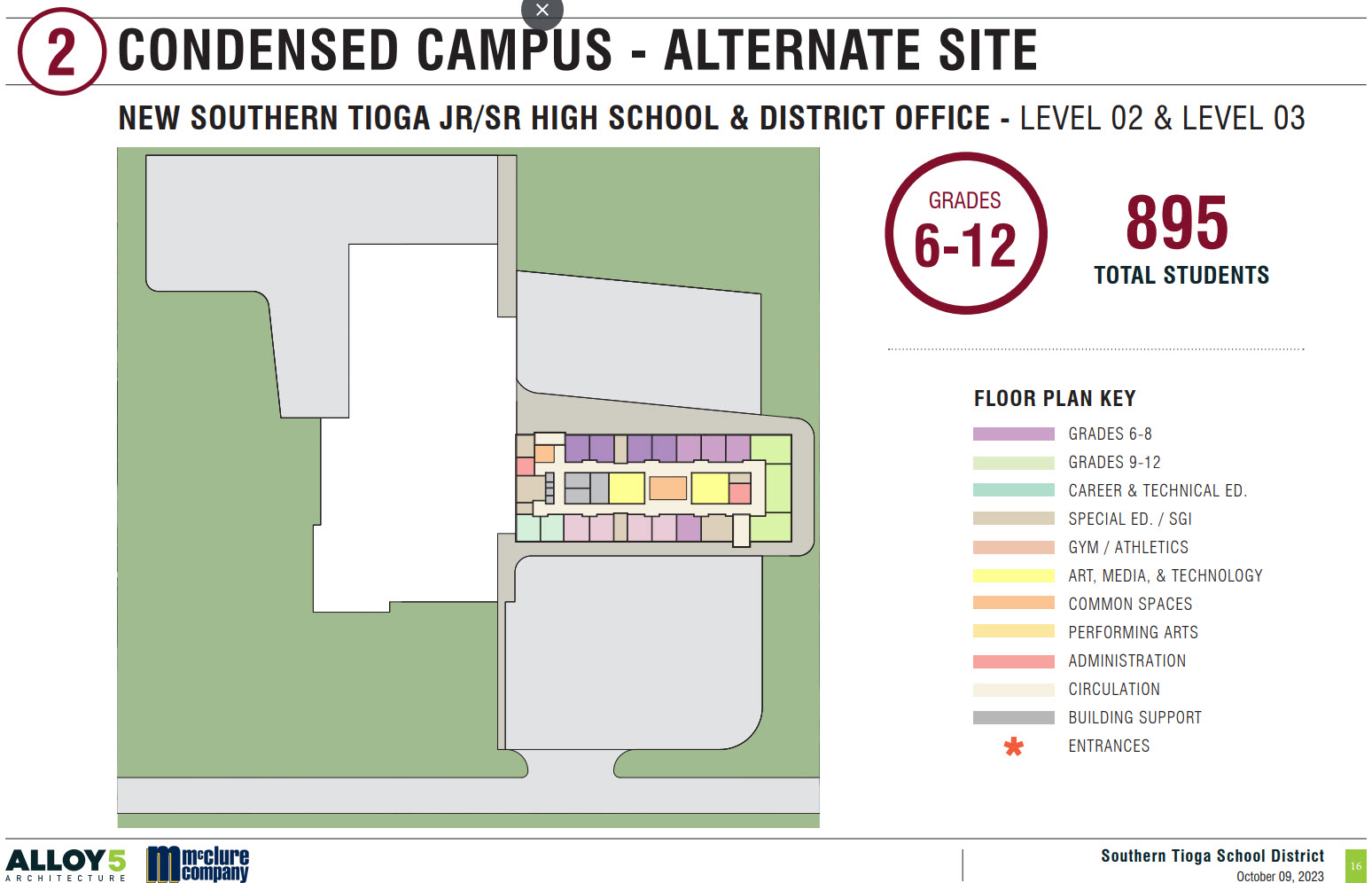 This option proposes maintaining the district’s North and South Mid/Highschool campuses, closing Liberty Elementary, and performing a minor expansion of Blossburg Elementary School..